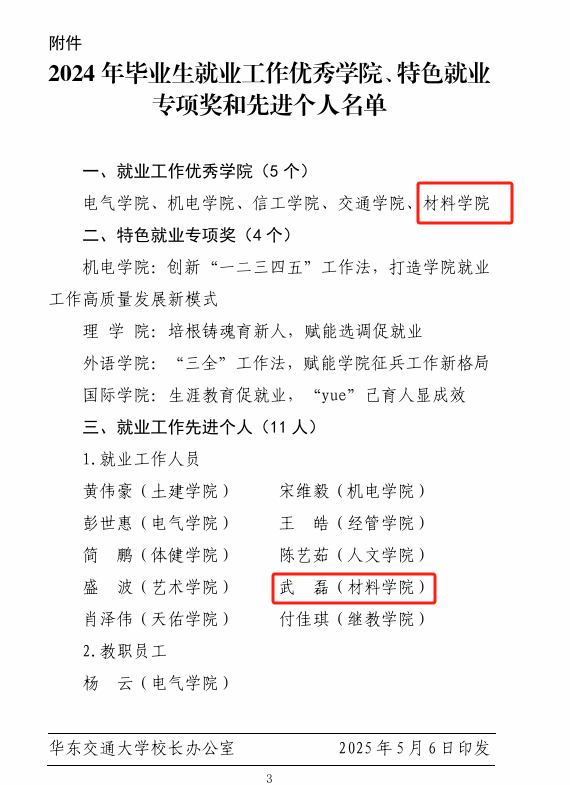 根据《伟德bevictor中文版毕业生就业工作考核及奖励办法(试行)》(华交校发[2015]26号)的规定,经多部门协同评审、校领导审批,公司在就业工作中斩获多项荣誉:公司被评选为“就业工作优秀公司”、武磊老师被授予“就业工作先进个人”荣誉称号。