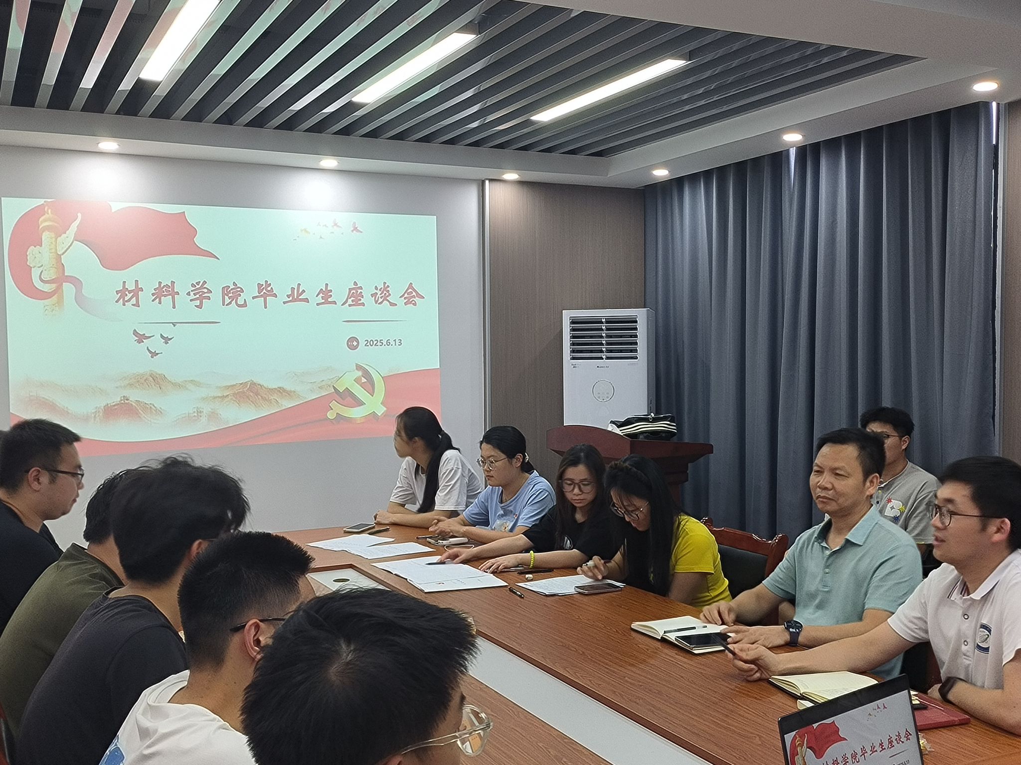 公司党委副书记胡国庆认真听取了同学们的发言,并结合当前就业形势与就业工作经验,对毕业生代表提出了意见建议。他指出,在新材料产业蓬勃发展的背景下,毕业生既面临广阔机遇也需应对新的挑战。针对同学们反映的就业难点和期望,胡国庆鼓励毕业生要保持积极乐观的心态,正视求职过程中的困难,提醒大家要把握关键时间节点,在完成学业的同时脚踏实地做好求职准备;同时还指出,学院今年考研率接近40%,同学们要顺应国家新材料战略需求,在专业领域深化发展可显著提升长期职业价值;最后要积极调整就业观念,激发内生动力,与公司共同努力寻求最优解。
