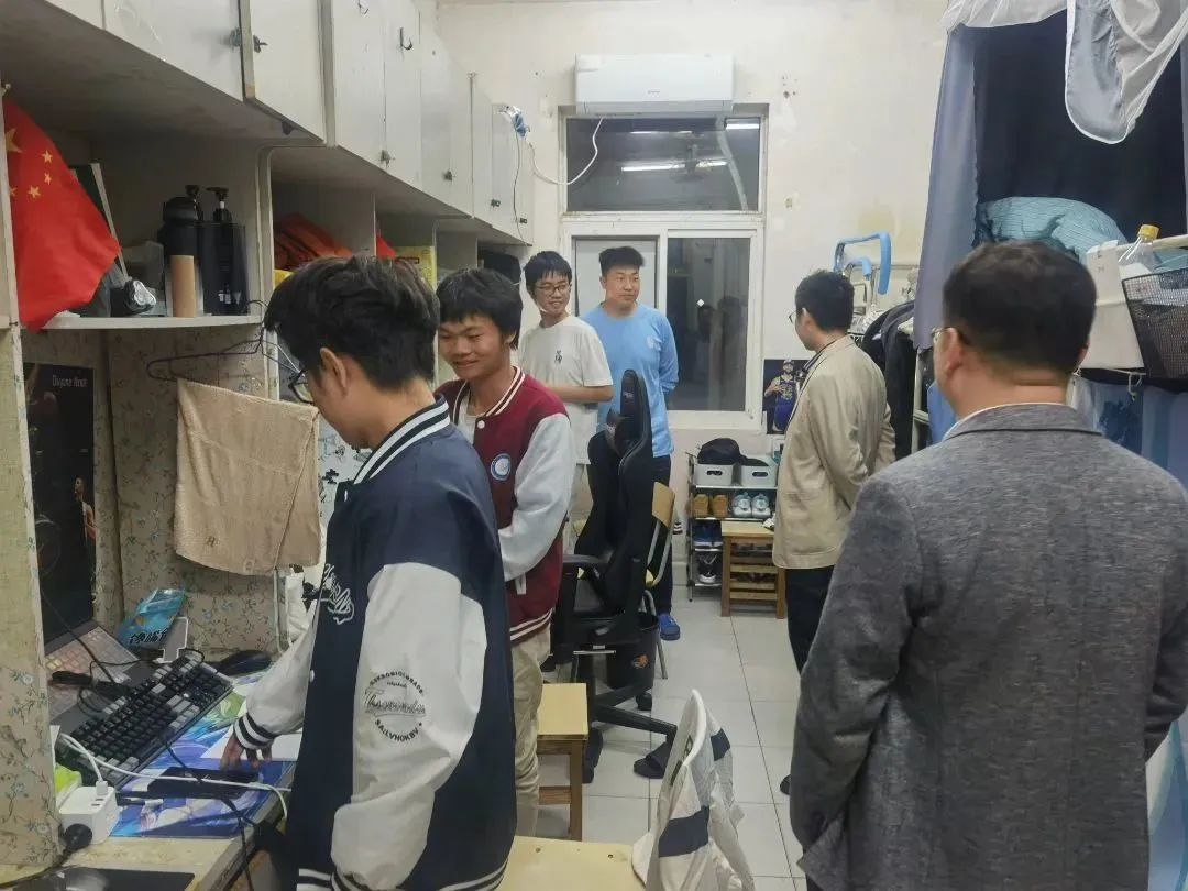 此次主要检查各寝室内基础设施是否完善、寝室是否存在安全隐患等。特殊时期,一方寝室成为同学们运动、生活和学习的主要场所,上网课成为大家汲取知识的主要途径。查寝期间,院领导亲切提醒同学们网课也是课程,不可懈怠,要学的扎实,认真上好每节课,强调要科学防疫,安全防疫,不折不扣落实好各项防控措施,遵守公司公司疫情防控要求,筑牢疫情防控“安全墙”。