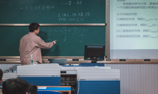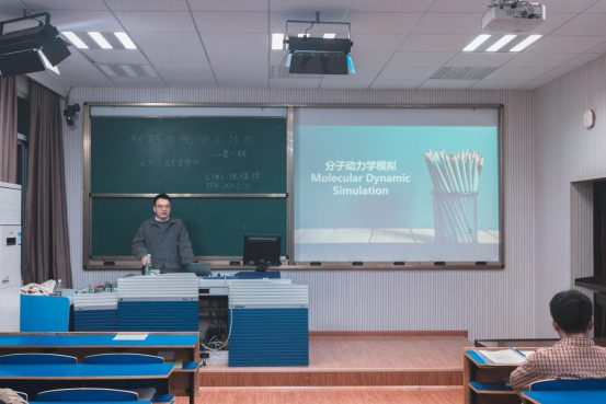 张耀瑄同学讲授题目为《分子动力学模拟》,他向大家介绍了分子动力学方法的底层原理和算法来,解析了分子模拟过程中分子的运动轨迹,并对一些重要函数进行解释和推导,帮助大家更好地理解分子动力学方法,为同学们呈现了一次难得的学术盛宴。
