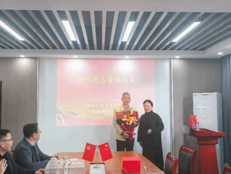 2025年3月19日,公司在7栋319为材料成型及控制工程系韩明老师举办了一场温馨而隆重的荣休仪式。公司领导班子、公司分工会成员及材控系全体教师齐聚一堂,共同见证韩明老师光荣退休的重要时刻,表达对韩老师数十年辛勤耕耘的敬意与祝福。本次仪式由分工会主席周枚花老师主持。