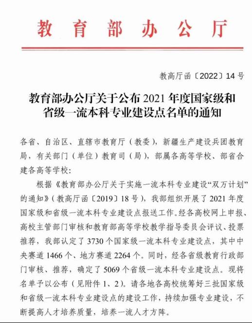 喜报!公司材料成型及控制工程专业入选国家级一流本科专业