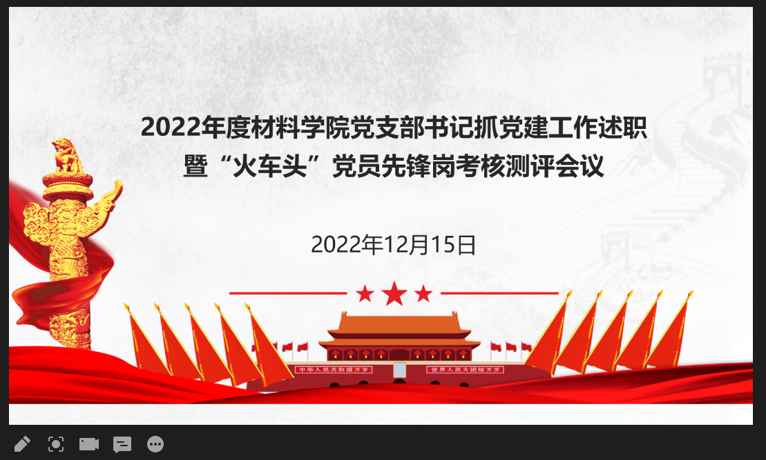 12月15日上午,材料公司在线上开展2022年度党支部书记抓党建工作述职暨“火车头”党员先锋岗考核测评会议。公司党委书记程浩、全体党支部书记及部分党支部委员参加会议,会议由公司党委组织员孟书慈主持。
