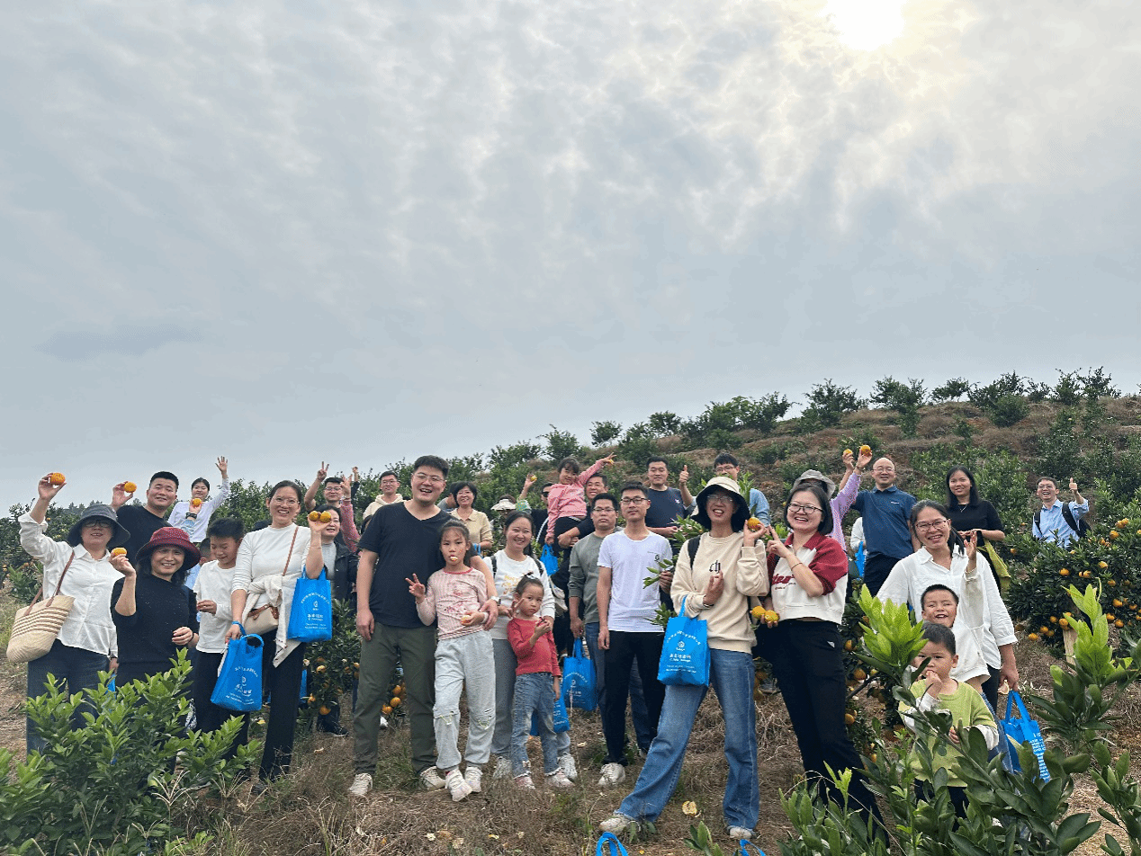 午后,活动氛围从肃穆转为轻松。大家来到风景如画的易家河村,在品尝了地道的农家风味午餐后,便迫不及待地投身于金灿灿的橘园之中。此时正值柑橘成熟的季节,满园橘香,沁人心脾。老师们兴致勃勃地穿梭于橘树下,一边欣赏田园风光,一边亲手采摘饱满诱人的果实。欢声笑语在果园里回荡,轻松愉快的交流拉近了彼此的距离,工作的疲惫也随之消散。大家手捧沉甸甸的“战利品”,脸上洋溢着丰收的喜悦。
