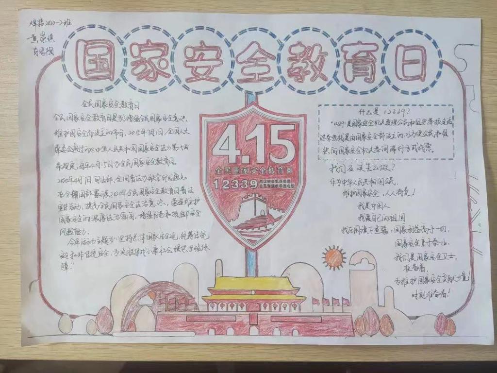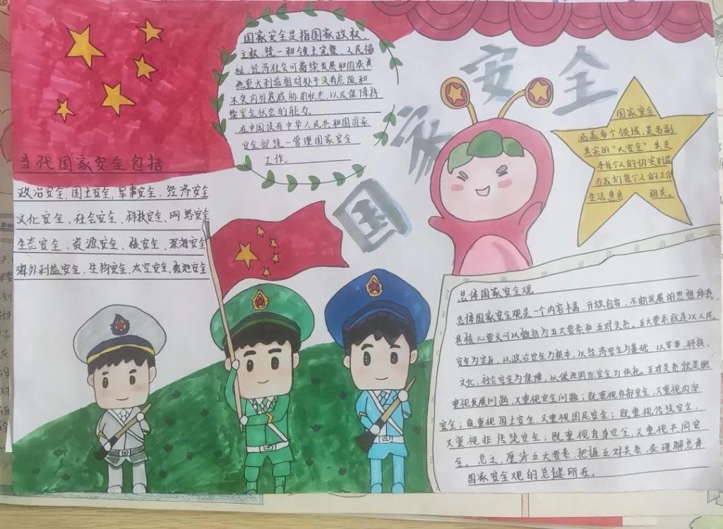 国家安全是指国家政权、主权、统一和领土完整、人民福祉、经济社会可持续发展和国家其他重大利益相对处于没有危险和不受内外威胁的状态,以及保障持续安全状态的能力。2023年4月15日我国的第八个国家安全日来临之际我们通过画手抄报的方式让同学们更加了解国家安全的重要性和公民维护国家安全的义务,树立正确的国家安全观念。