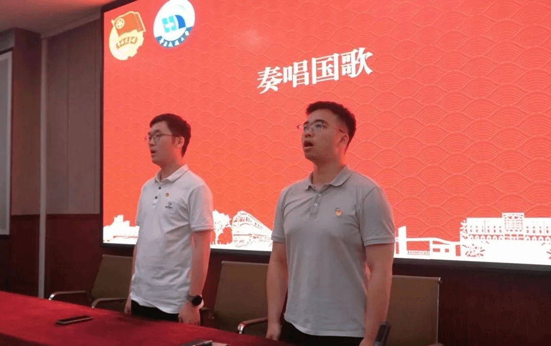 奏响国歌后,全体同学起立,土建公司的团员代表欧阳汗青带领全体新团员庄严宣誓。新团员们面对鲜红的团旗,举起右手,声音铿锵有力,表达了他们对共青团组织的忠诚与热爱,以及履行团员义务、发挥团员作用的决心。随后,新团员代表土建公司戴煜萱和优秀团员代表bevictor伟德王军鹏依次发言。