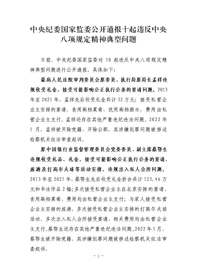 中央纪委国家监委公开通报十起违反中央八项规定精神典型问题
